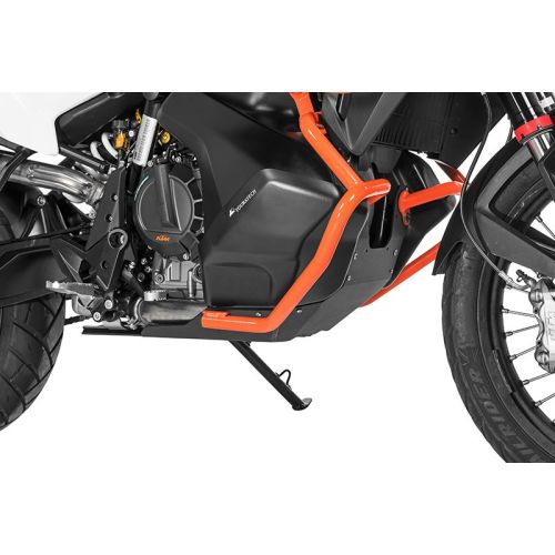 The result is a clever 3-part construction. This simplifies mounting and saves unnecessary additional weight. The resulting full 360° protection ensures that even in the toughest off-road conditions the engine, the exhaust system and the critical areas of the tank are protected. Flying stones and ground contact can do very little damage to your KTM 790.
