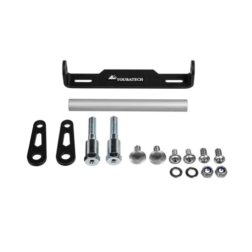 The adjustable Touratech GPS mounting adapter can be easily attached to almost any tubular handlebar clamp. The distance between the handlebar clamp screws can be between 78 and 104 mm.