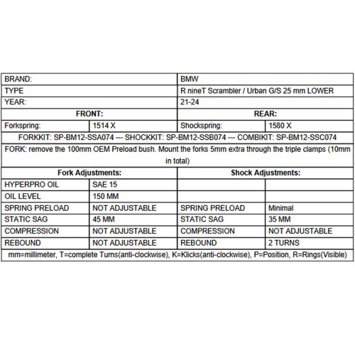 Lowering KIT by -25mm for BMW RnineT Scrambler / Urban G/S (2021-), Replacement springs