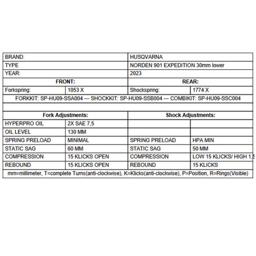 Progressive lowering replacement springs front and rear -30mm, for Husqvarna Norden 901 Expedition