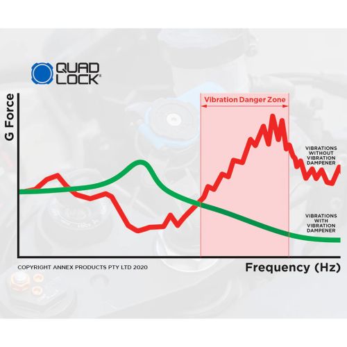 Compatible with all Quad Lock® Motorcycle Mounts and Quad Lock® Motorcycle Accessories, Quad Lock® Vibration Dampener reduces over 90% of all high-frequency vibrations generated by motorcycles.