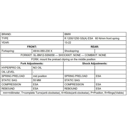 This Set of linear replacement springs has been designed to match the BMW R1200GS / R1250GS Adventure perfectly, and offer a “tremendous improvement” in response and greater safety in extreme situations. Replacing the front and rear springs will lead to a significant improvement and more riding pleasure with your motorbike.
