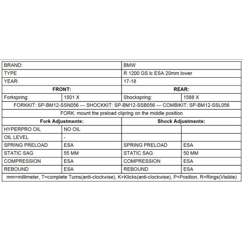 The height lowering replacement springs has been designed to match the BMW R1200GS(LC)/R1250GS from 2017 perfectly This spring set provides you with a -20mm reduction in height without affecting the riding properties - at the expense of a little ground clearance. The progressive springs have been designed to match the original shocks BMW R1200GS(LC)/R1250GS perfectly, and offer good response and safety in extreme situations. The balance of your motorcycle remains fully intact..