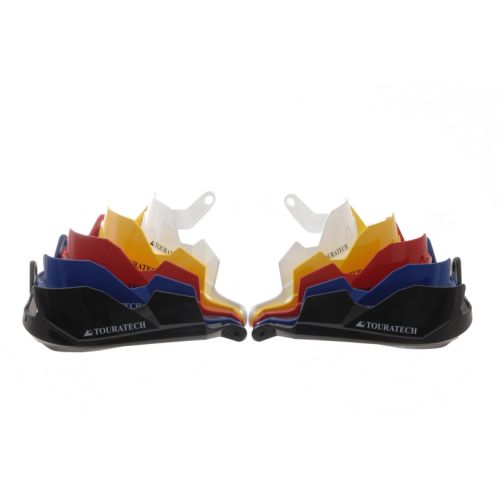 Unlike the original ones these hand protectors are not fitted to the clamps on the control units or brake unit but directly onto the tubular handlebars. This considerably reduces the risk of the hand brake lever mounting breaking off if you fall and thus making it doubtful whether you can continue riding. The hand protector can be combined with various spoilers and then offers optimum protection against wind and weather. A very strong, sturdy construction which has proved itself time and again in many rallies and on other motor cycles.