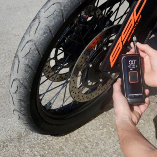 With a performance of up to 10.3 bar (150 PSI), this air compressor delivers impressive results even in demanding situations. The powerful 4000 mAh battery allows you to inflate up to four motorcycle tires on a single charge. In standby mode, the battery lasts up to six months, and the included USB Type-A to Type-C cable fully recharges the device in just 1.5 hours.