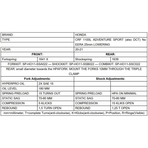 - The matching components for your Honda CRF1100L Adventure Sports can be found in the accessories of this article. Please scroll down.