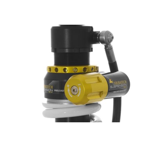 The Touratech Suspension Extreme shock absorber ranks in the absolute premium class of suspension components. This Extreme shock absorber for the Triumph Tiger Explorer is perfectly suited to touring and riding with frequent dramatic changes in loading and riding conditions, and the most extreme demands. The Extreme shock absorber is fitted with a position sensitive damping system (PDS), which utilises a second damping piston to provide hydraulic protection against bottoming out. Even fully laden with luggage under the most extreme off-road conditions, the bike will not bottom out and the shock absorber is protected against mechanical overload. Damping characteristics change depending on the road surface. When riding under most conditions, the shock absorber is comfortably adjusted for a less strenuous ride, before the PDS kicks in for the last portion of the shock absorber stroke.